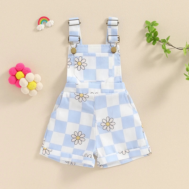 Lioraitiin Toddler Baby Girl Checkerboard Floral Print Summer Sleeveless Overalls Jumpsuit