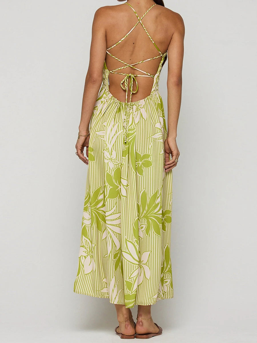 Elegant Maxi Dress with Boho Floral Print Adjustable Spaghetti Straps and Flowy Silhouette for Summer Beach Wedding