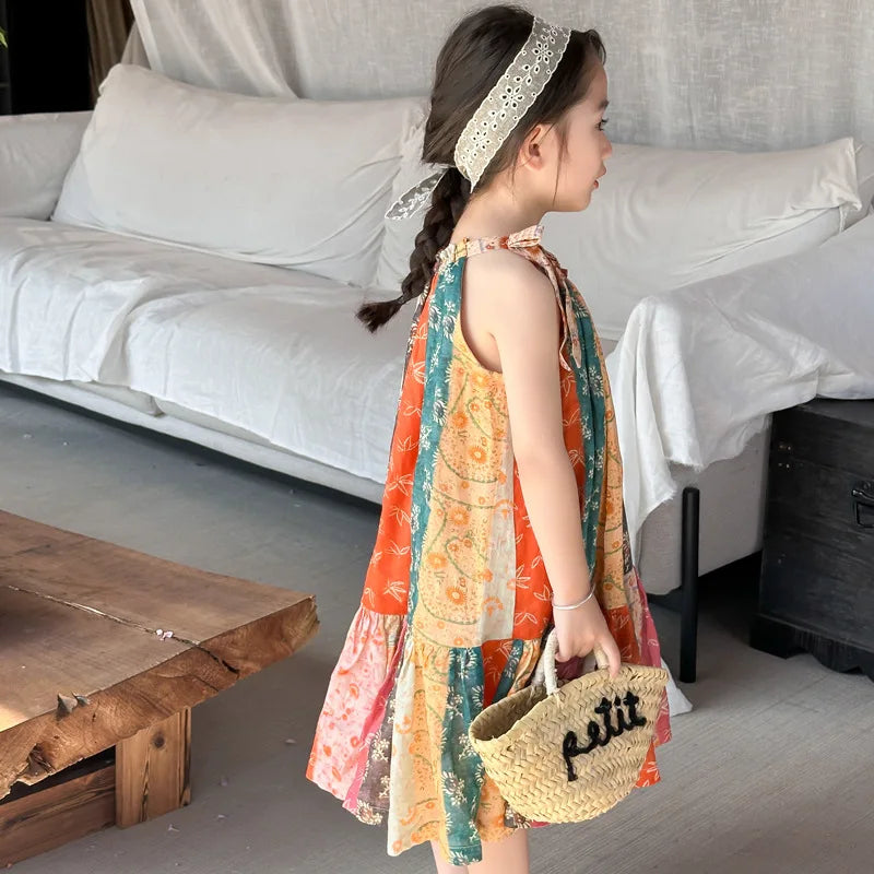 Dress your little one in this adorable piece that combines traditional charm and contemporary style. Whether she's attending a summer picnic or a birthday party, this dress is sure to turn heads. Don’t miss out—add the Girls Casual Dresses Floral Print Halter Sleeveless Top to her wardrobe today and let her showcase her unique style!