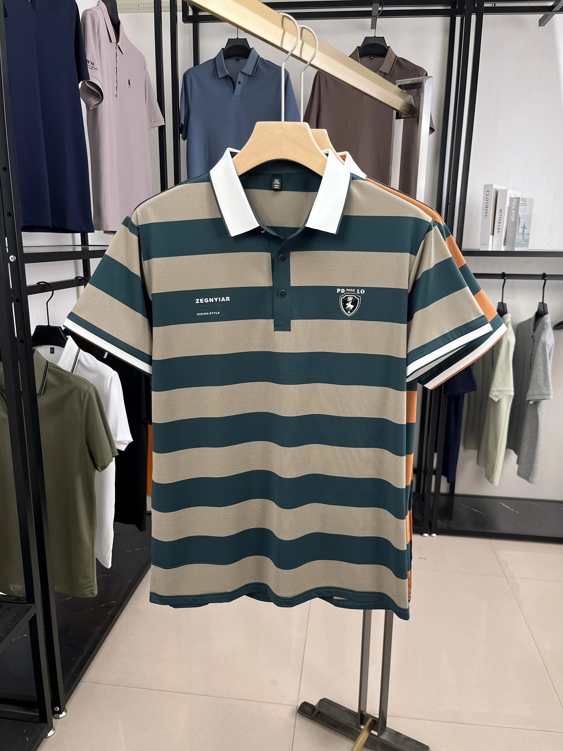 Choose the High End Fashion Striped Men's Short Sleeve Polo Shirt to showcase your style and comfort this summer. Don't miss out on adding this versatile piece to your collection—order yours today and experience the blend of luxury and practicality!