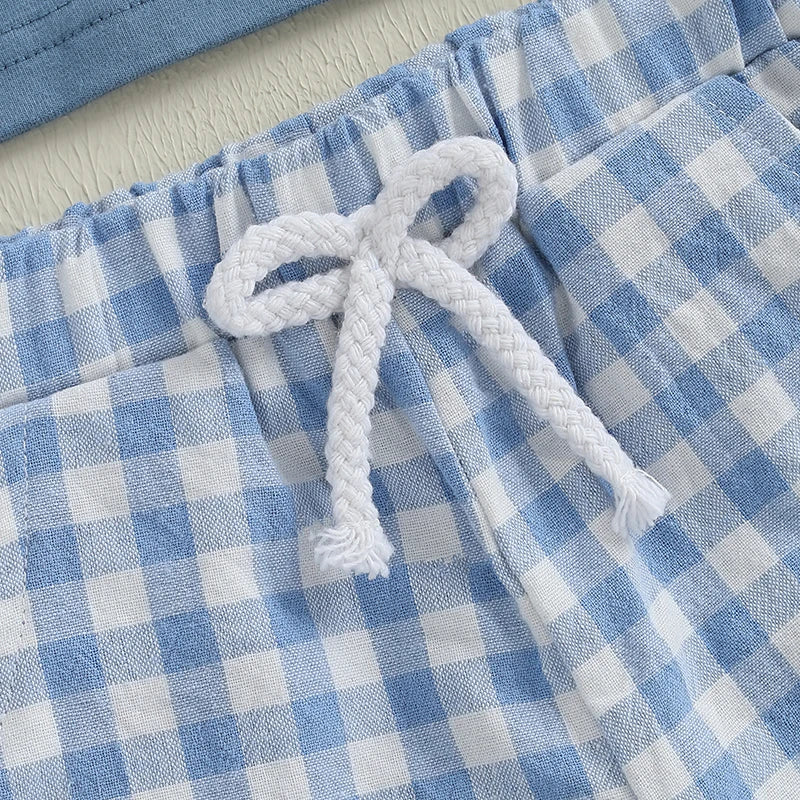 Dress your little one in style with our Infant Boy's Casual Outfit featuring an Embroidered T-shirt and Plaid Shorts. This charming 2-piece set is designed for toddlers, combining comfort and trendy aesthetics that are perfect for any occasion.