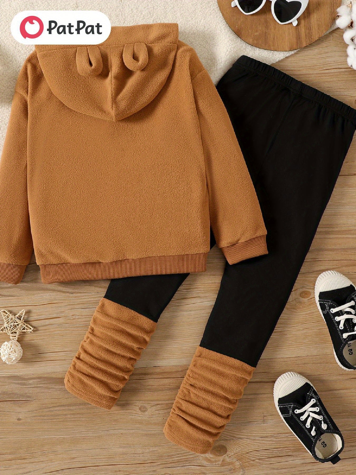 PatPat 2pcs Kid/Toddler Girl Polar Fleece Hoodie Set for Outdoor