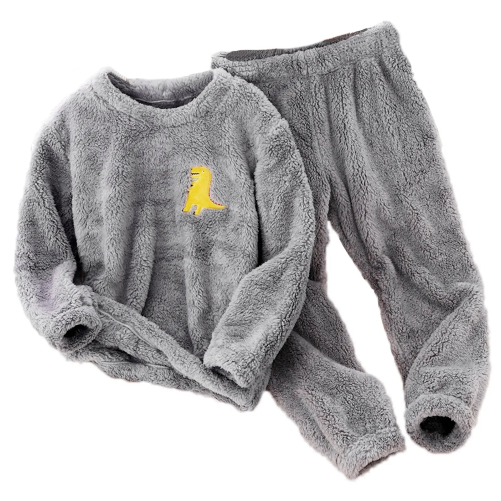 Winter Long Sleeve Cartoon Print Fleece Tops Pants 2 Piece Outfit Set for Toddler Kids Boys Girls Pajamas Tracksuit